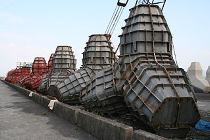 もしかしたら、私以外にもこんな「巨大テトラポッド」に見とれる人がいるかもしれないので、テトラポッドの「骨」や、立体十字型テトラポッドの生産工場の写真を下に貼り付けておきます。なんだか、立体十字型テトラポッドが、太平洋に浮かぶイースター島で、水平線の彼方を眺めるモアイ像のように見えてくるのは私だけでしょうか?