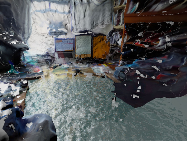 …というわけで、取り込んだ実世界を海面の上に浮かべてみました。たとえば海水面が上昇し、「作業机」が海辺になったなら?的世界を作り出してみた…というわけです。実世界のさまざまなデータをTheta Sで手に入れたなら、「実世界を自由自在に加工できたりする」のが面白いところです。