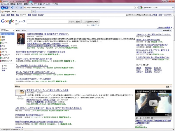 そこで、ためしに、同じ2つのサイトを(それぞれ独立のウィンドウで)ブラウザーで開き・眺めてみました。それが、下の画像です。上の画像がThinkPad Edge 13”の画面をキャプチャしたもので、下の画像がThinkpad X61Tabletの画面例です。横幅はほとんど同じですが、縦長さが結構違います。この画面の縦長さ・広さの違いを気にするか・気にしないかは、人それぞれの「ノートPCを使って何をするか」や「本人の志向」によるかもしれませんね。